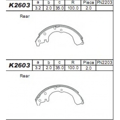 K2603 ASIMCO Комплект тормозных колодок
