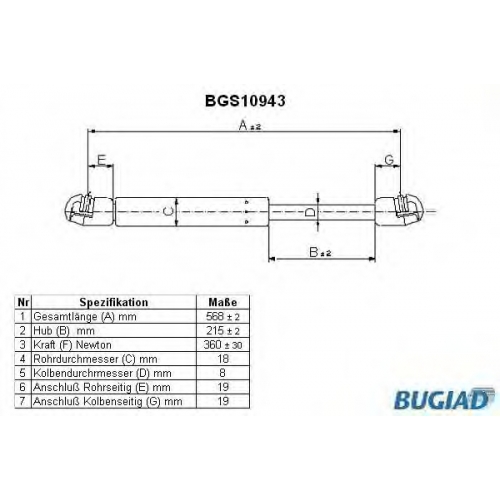 BGS10943 BUGIAD Газовая пружина, крышка багажник