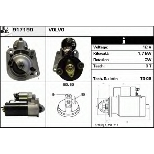 | Мощность стартера [кВт] | 1,7 |