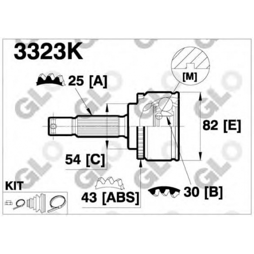 3323K GLO Шарнирный комплект, приводной вал