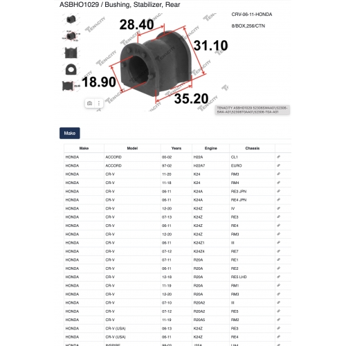 ASBHO1029 Tenacity Втулка стабилизатора
