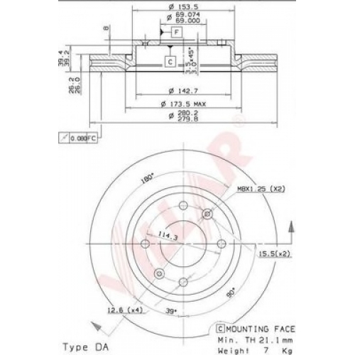 628.2015 VILLAR Тормозной диск